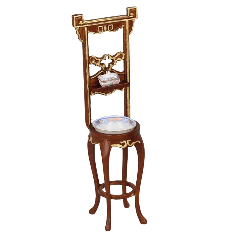 Antique sink cabinet. Includes the decorated porcelain pieces.